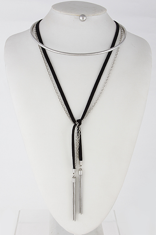 - * Simple Solid Long Choker With Bars Set 6FCE4 * 14" approx.