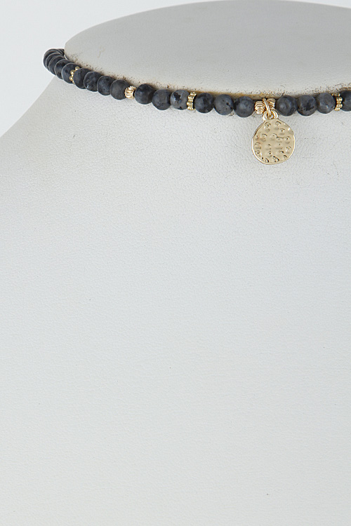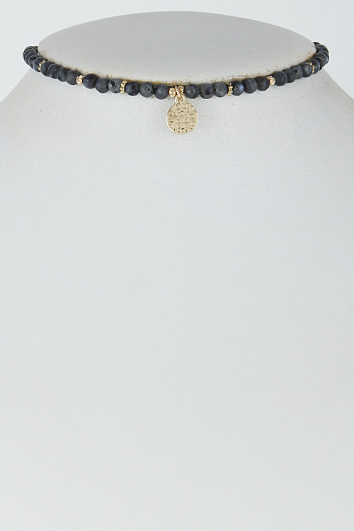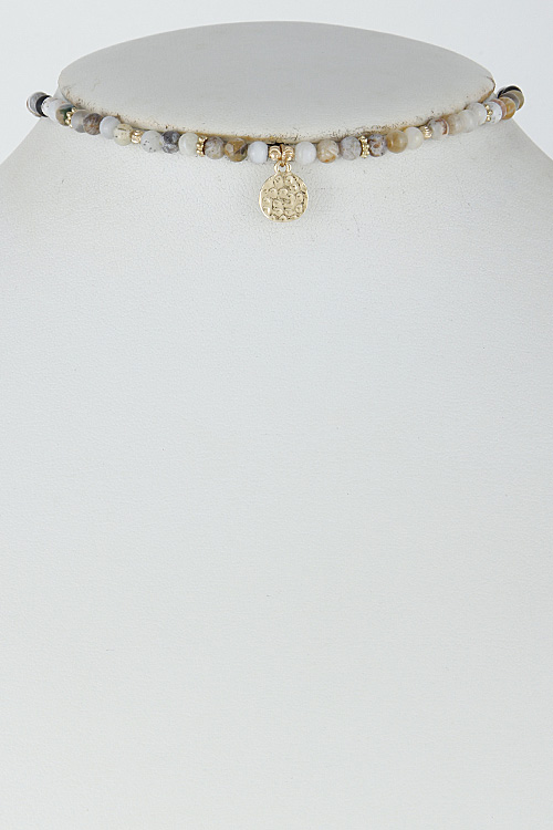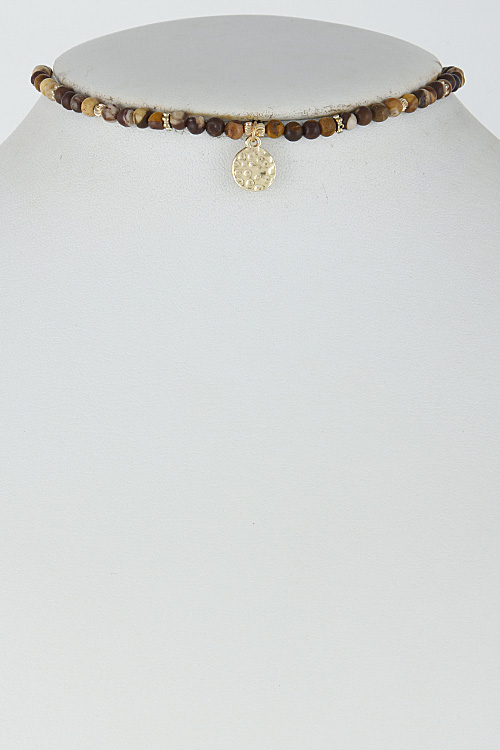 - * Small Beaded Necklace With Circle Emblem 6HAG1 * 12" approx.