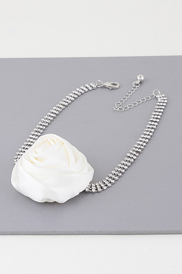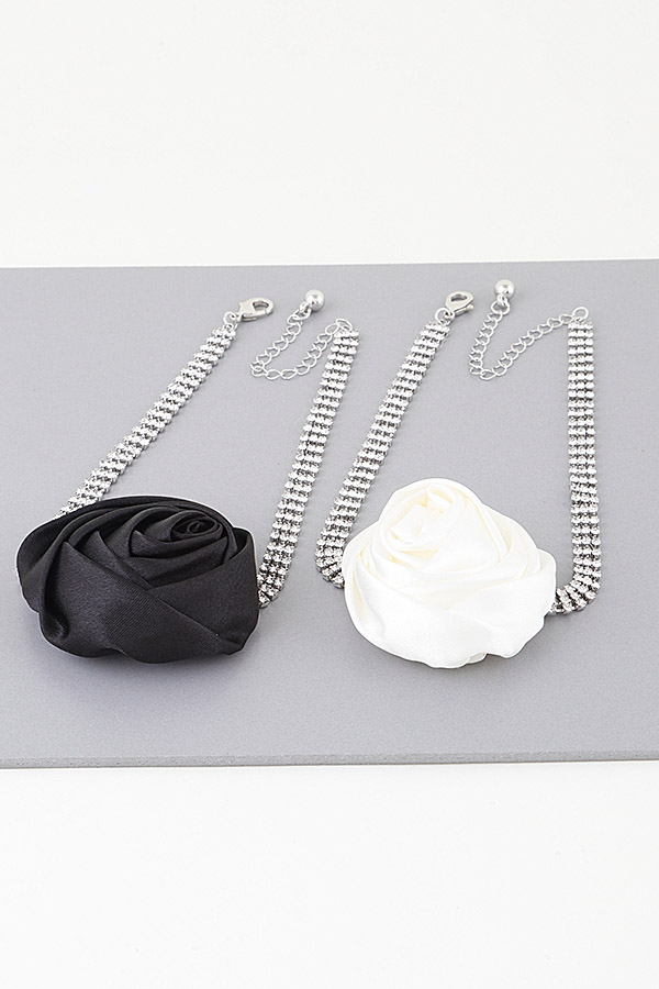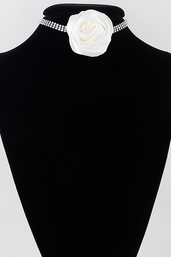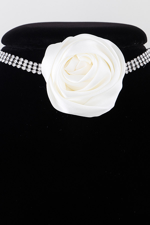 - * Classy Triple Rhinestone Rose Choker Necklace