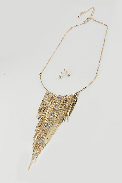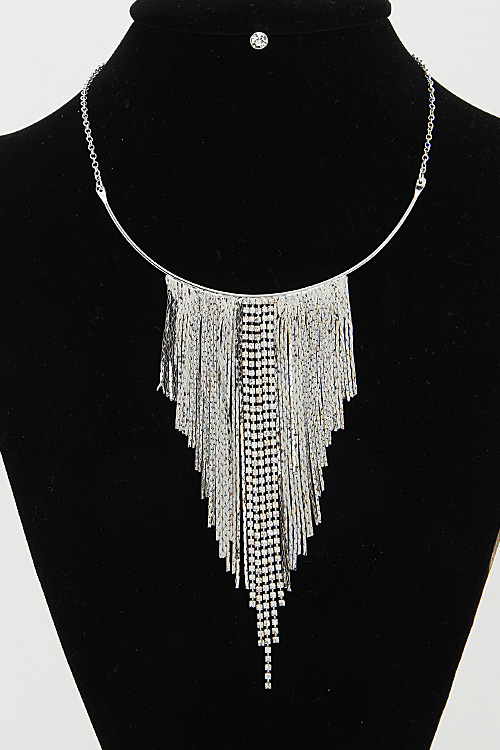 - * Cascading Rhinestone Choker Necklace Set 6ABC2 * 12 x 4" approx.