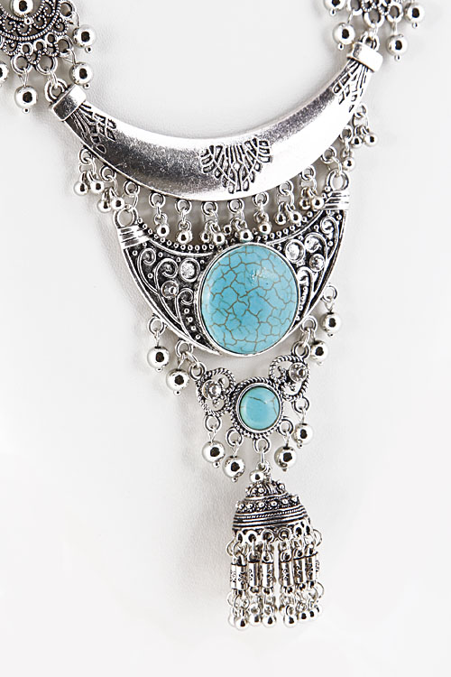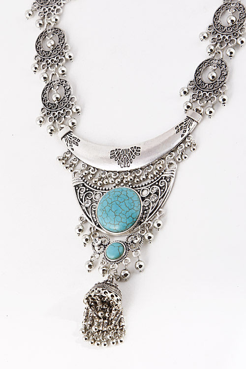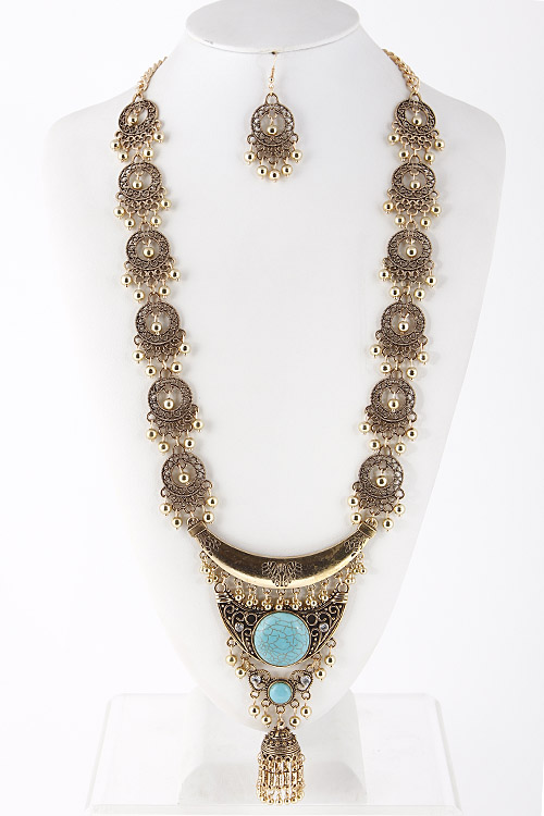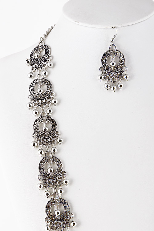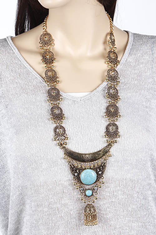 - * Circle Charm Linked Long Statement Drop Necklace 5FBC * 25 x 5" approx.
