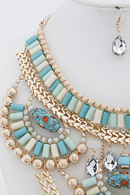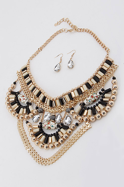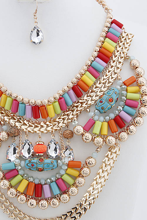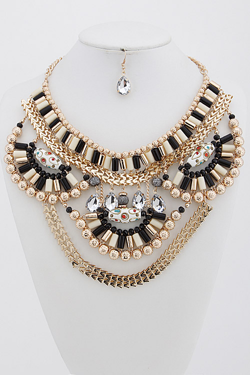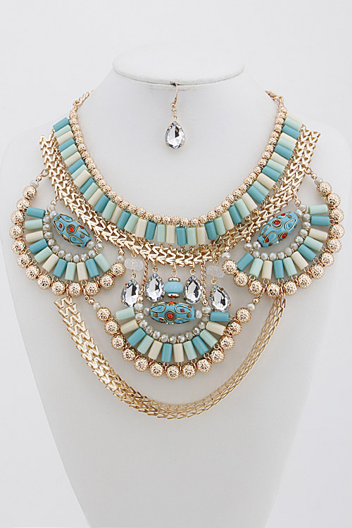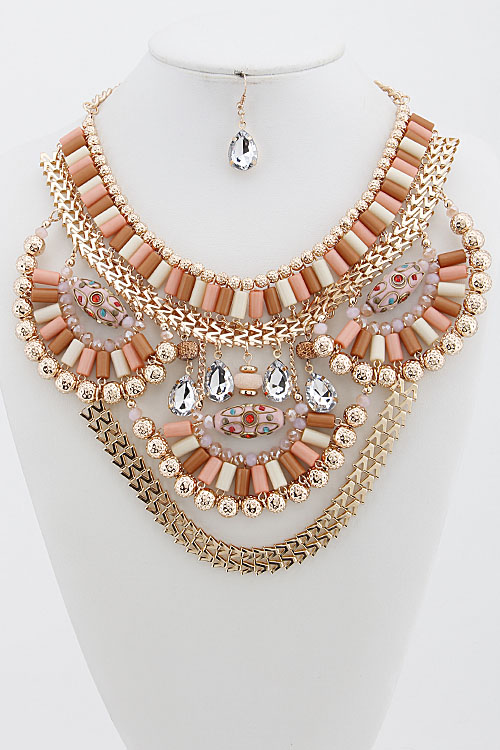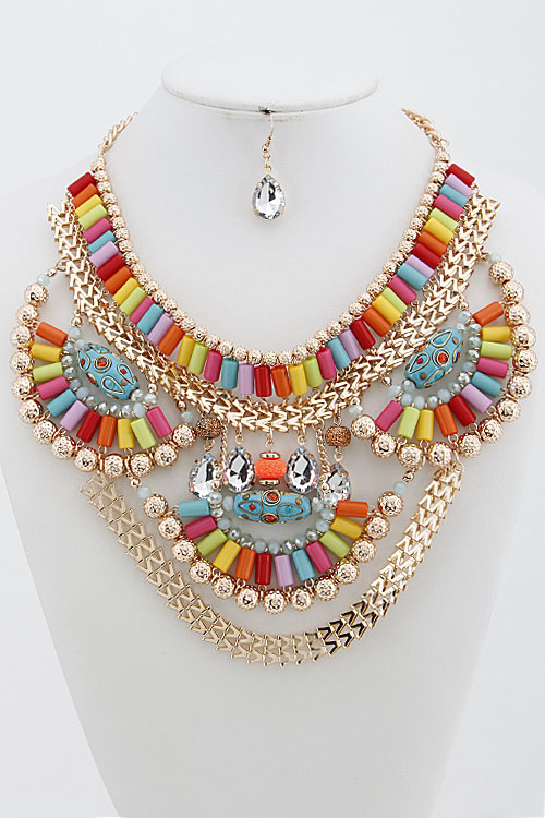 • * Tribal Round Statement Necklace Set 5LBB * 16 X 5" approx.