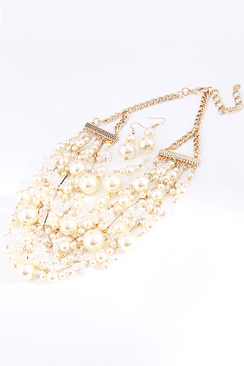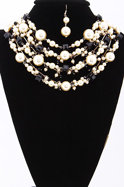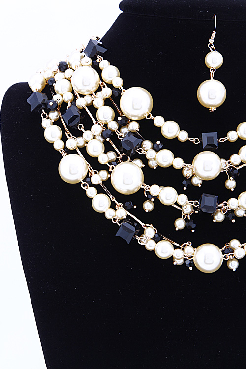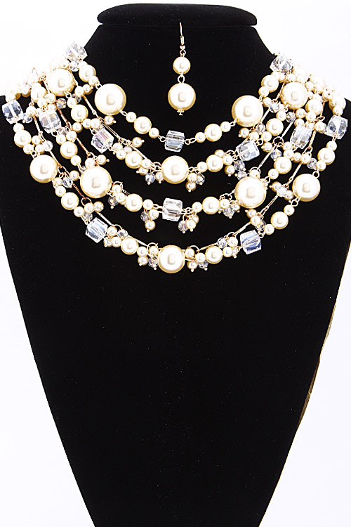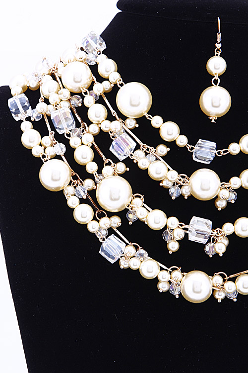 • *Four Layered Beaded Statement Necklace Set 6BAI9 *1.5 X 18" approx.