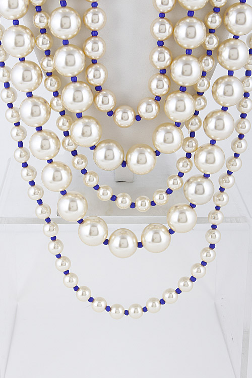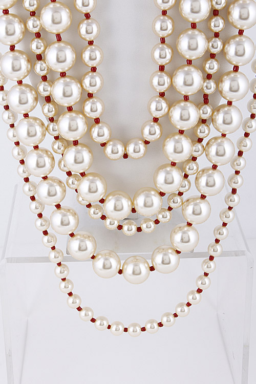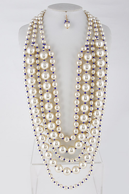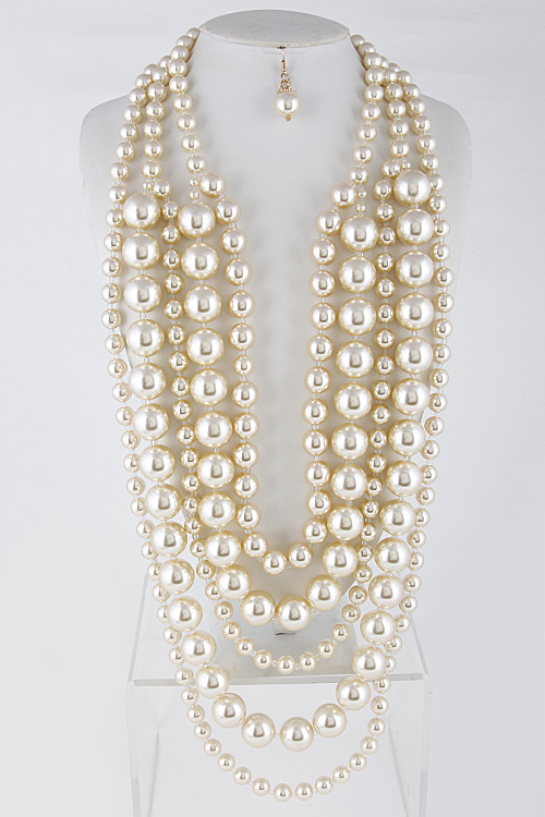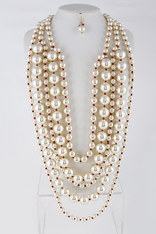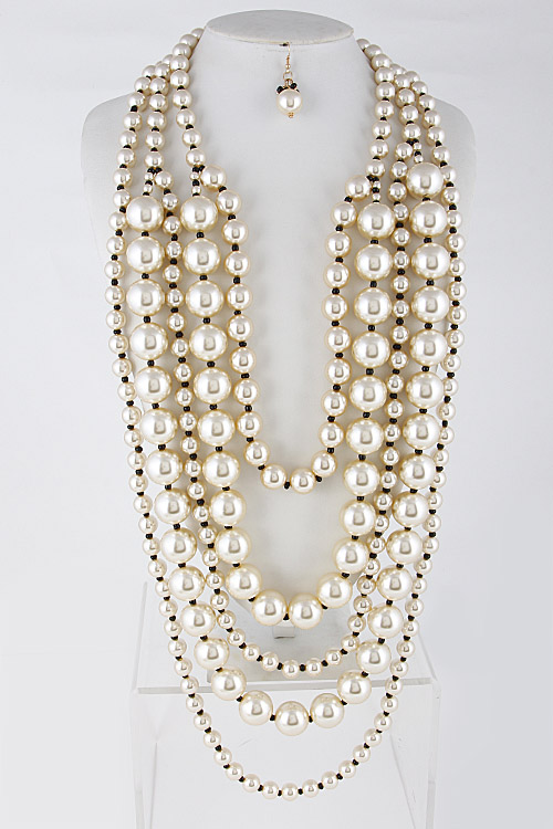 - * Faux Pearl Multi Layered Formal Necklace Set 6FCB * 1.6 x 32" approx.