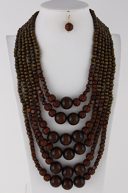 - * Antique Style Beaded Multi Layered Necklace 6KAC7 * 2 X 20" approx.