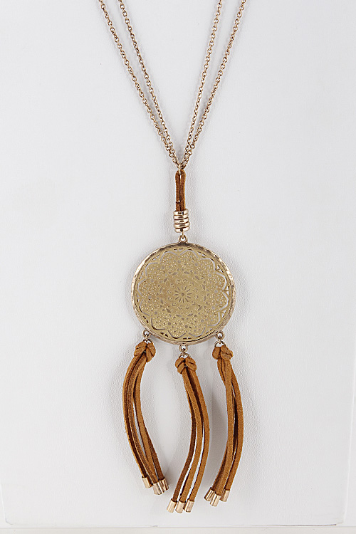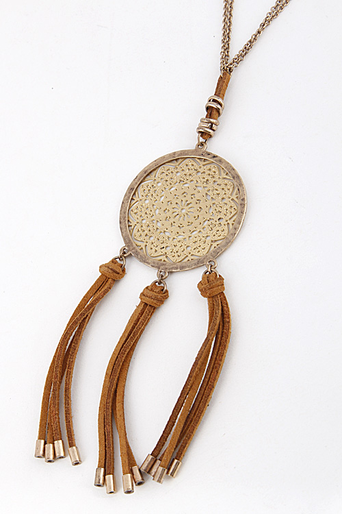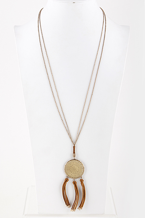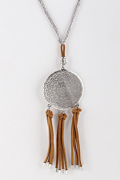 - * Medallion Long Layered Necklace with Tassels 5ICC6 *28 x 5" approx.