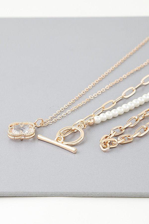 - * Introducing the "Multi Crystal Clover Necklace" from H&D Accessories – a stunning three-layer design that beautifully showcases a sparkling pendant and delicate chain. Elevate your accessory game with this exquisite piece that combines elegance and charm, perfect for any occasion.