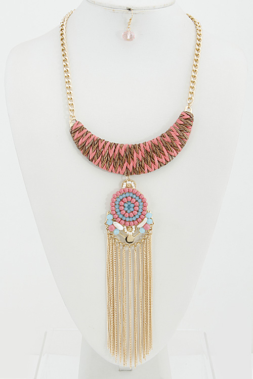 - * Crescent Shape Statement Necklace Set 5LCG6 * 20 x 6" approx.