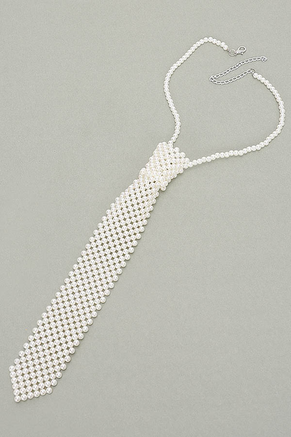 Faux Pearl Polyester Necktie Necklace