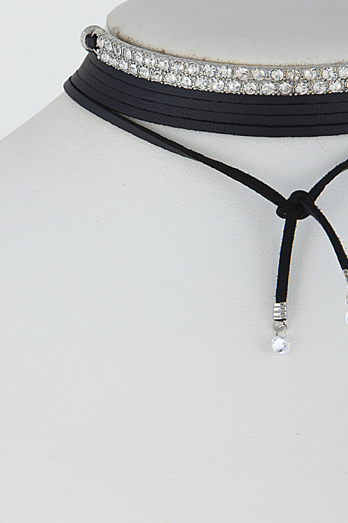 • * Rhinestone Choker Necklace With Strings 6HAG9 * 76" approx.