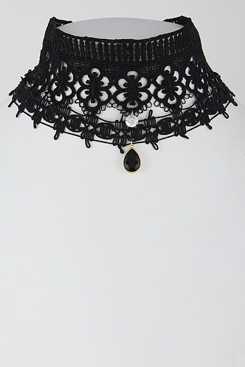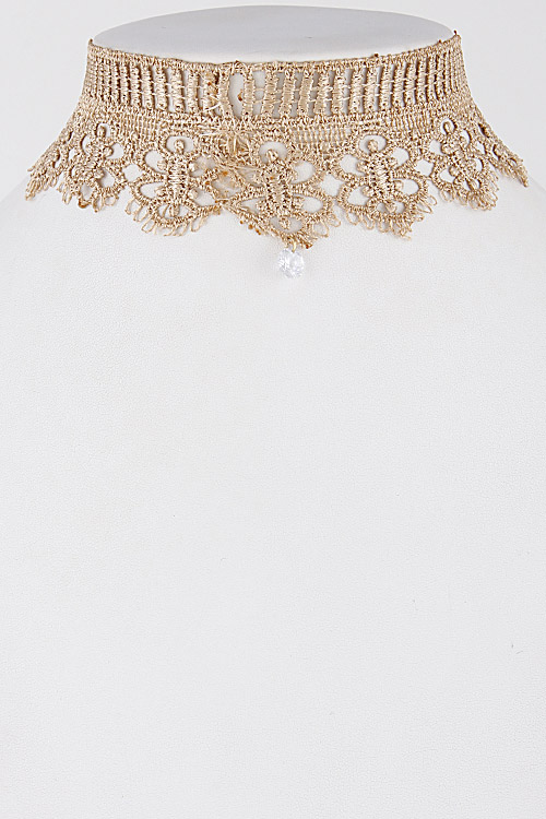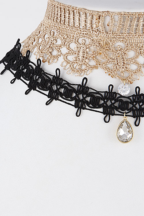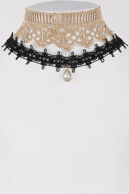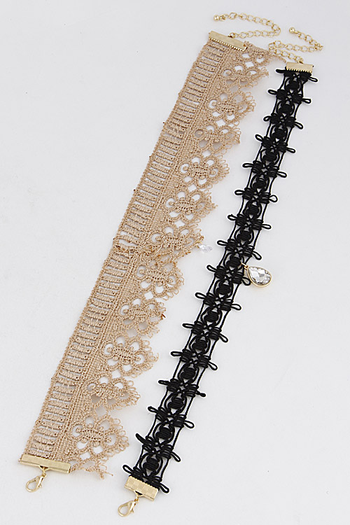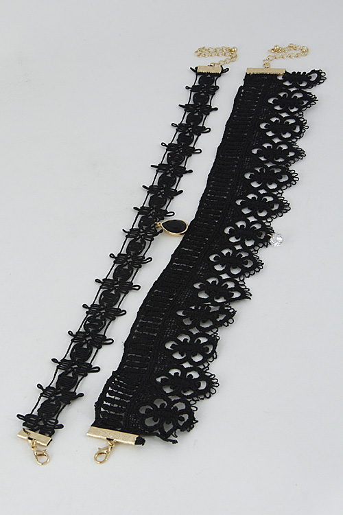 • * Thick Lacey Flower Choker With Stone 6LBA5 * 2 X 12" approx.