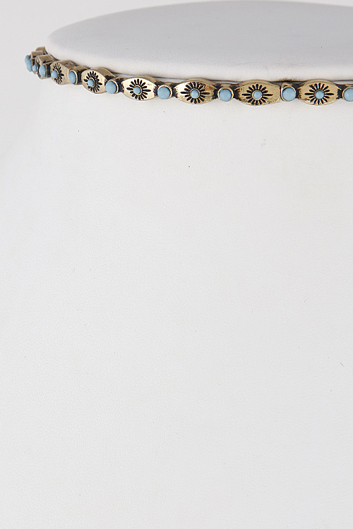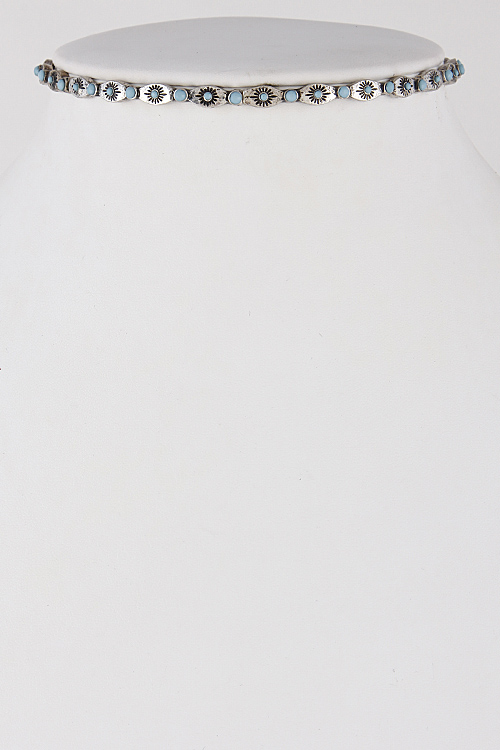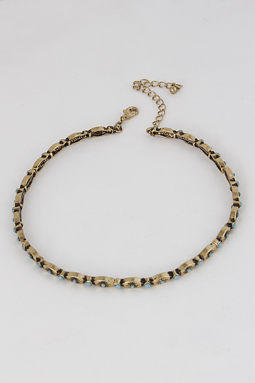 • * Thin Antique Inspired Stone Choker Necklace 6IBE9 * 10" approx.