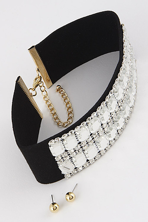 Formal For Days Rhinestone Choker Necklace Set 6ICG4