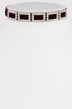 Rhinestone Rectangle Formal Choker Necklace 6JBC6