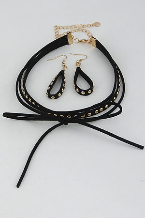 Multi Layer Studded Choker Set With Bow 6HCG5