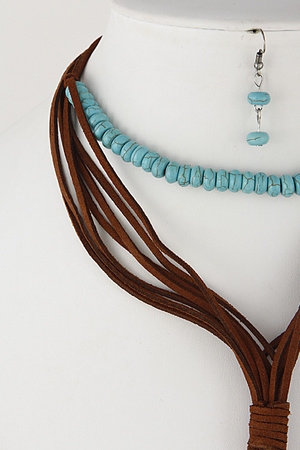 Long Beaded Choker Necklace With Fringes Set 6HCJ1