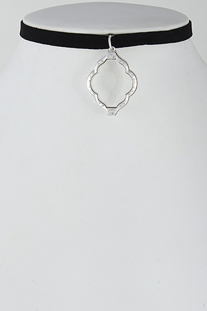 Simple Solid Choker With Four Leaf Emblem 6HCG2