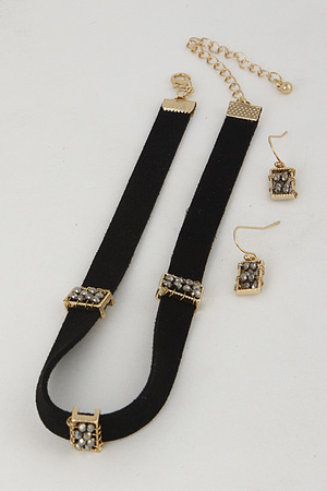 Thin Rectangle Rhinestone Stud Choker Set 6HCJ2