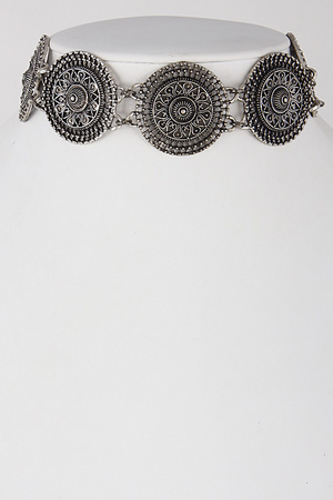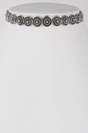 Antique Inspired Studded Flower Choker Necklace 6IBA10