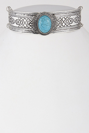Antique Inspired Oval Stone Choker Necklace 6IBA6