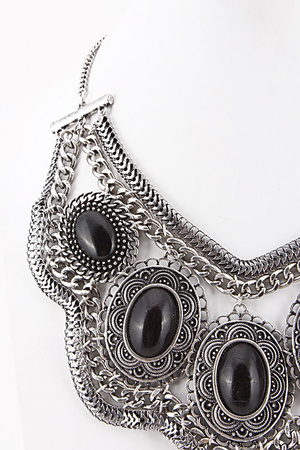 Multiple Stick Bar Lined Plate Collar Necklace 5FCJ7
