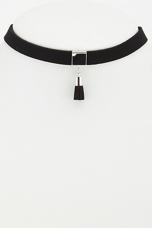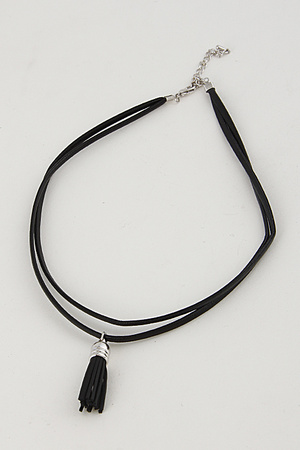 Black Choker Layered Necklace with Tassle Necklace 6FBF7
