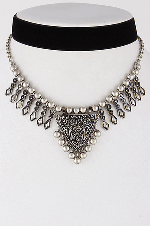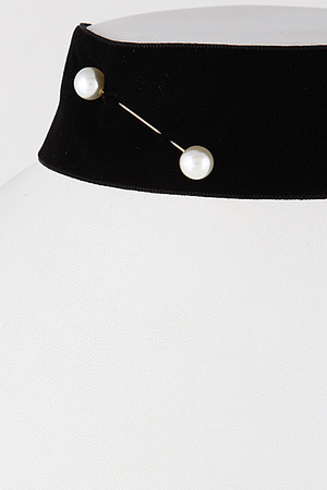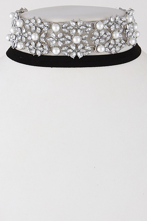 Thick Fancy Choker Necklace with Pearls Details 6KCB1