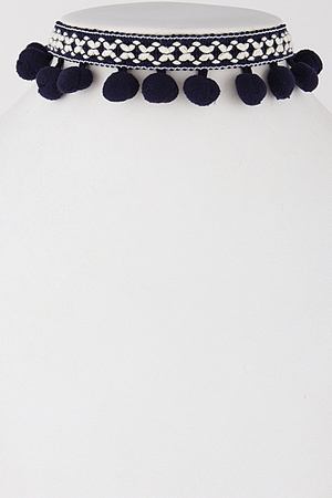 Unique Style Choker Necklace with Small Puff Ball Details 6KCA6
