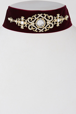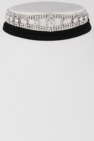 Daily Choker Necklace with Ribbon and Rhinestone Detail 6KCB8