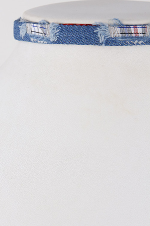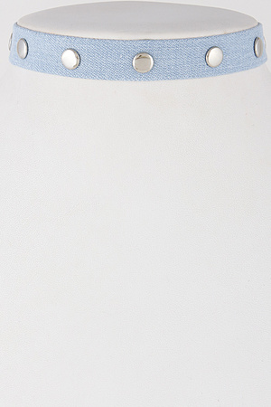 Day To Day Denim Choker Necklace with Circle Details 6KCB1