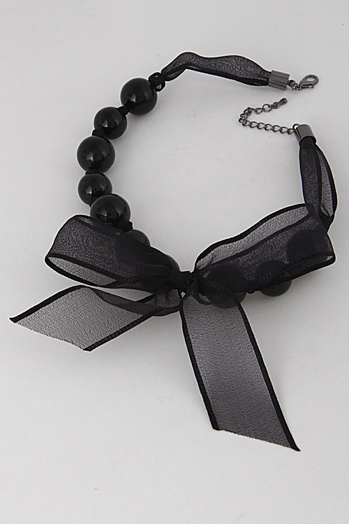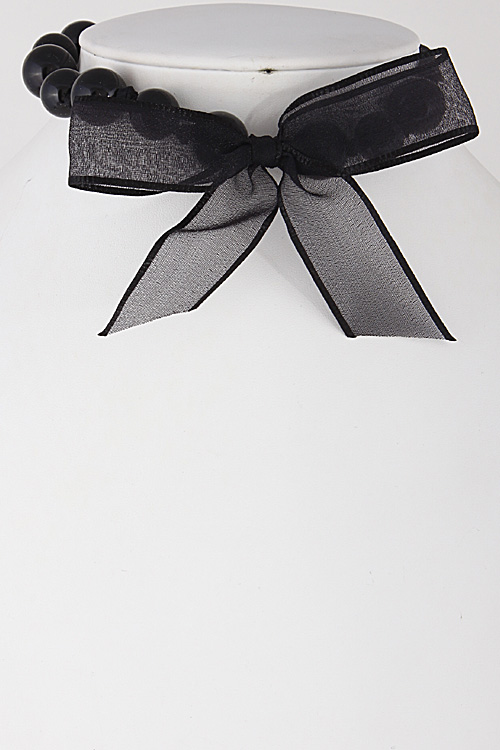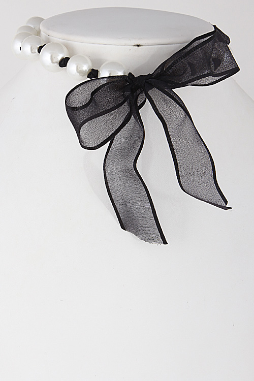• * Faux Pearl Choker Necklace With Bow 6IBB3 * 12" approx.