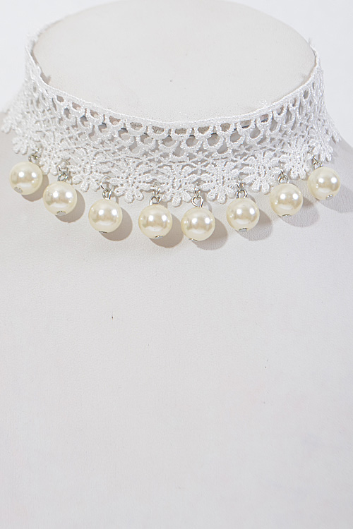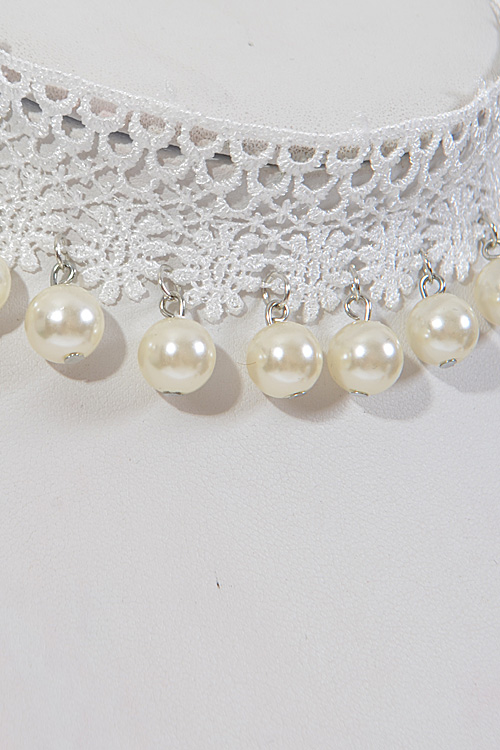 • * Lacy Simple Flower Choker With Faux Pearl * 16 X 1.5" approx.