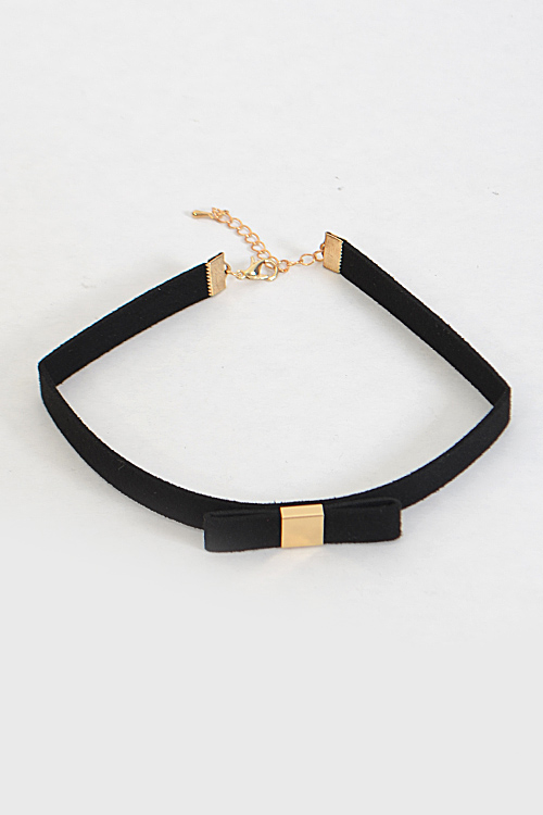 - * Simple Thin Choker Necklace With Bow * 14.5 x 0.4" approx.