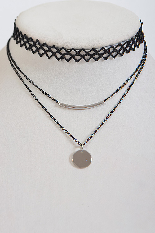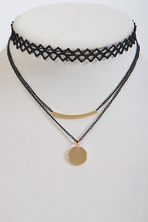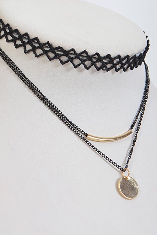 • * Triangle Patterned Multi Layer Choker Necklace * 15 x 0.4" approx.