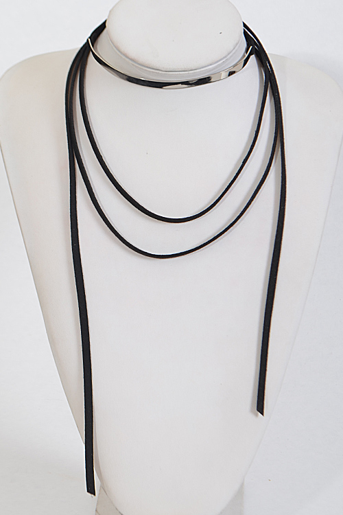• * Multi Layer Thin Choker Necklace With Bar * 74" approx.