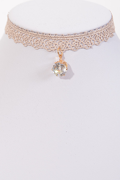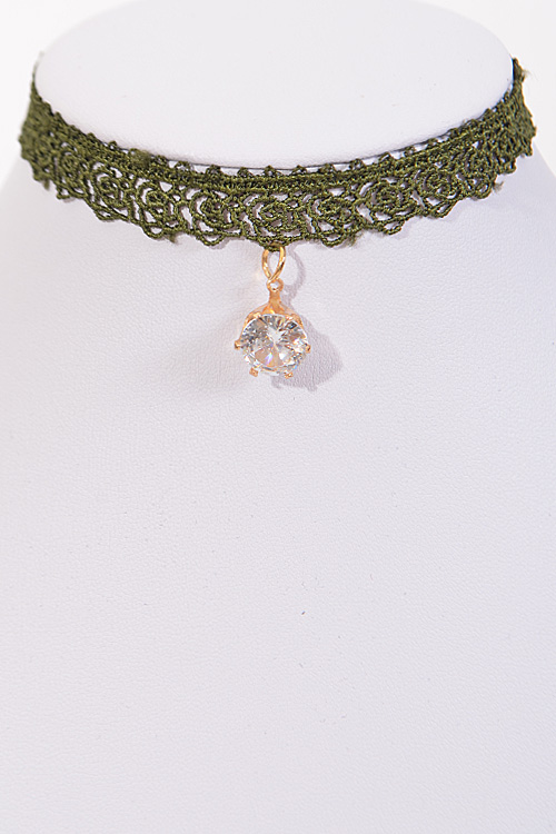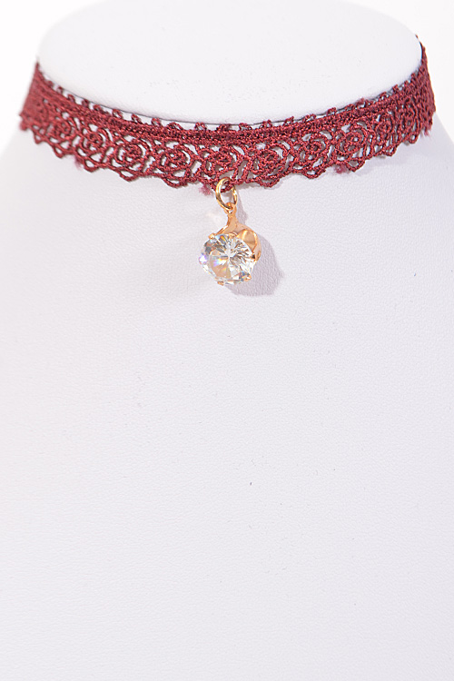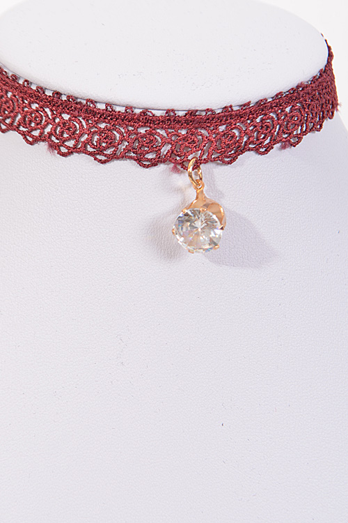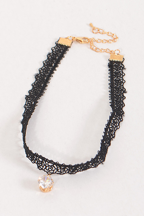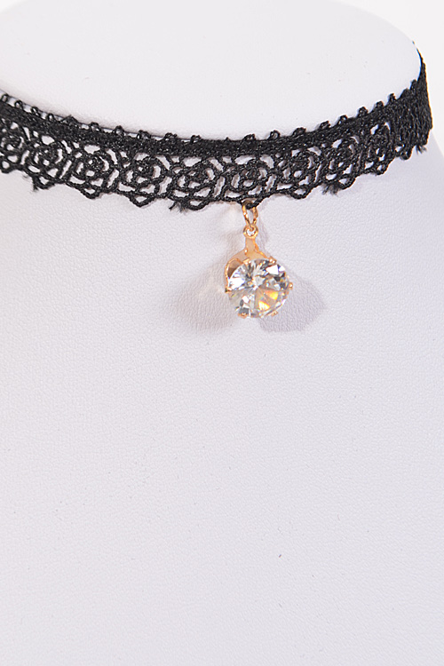- * Shiny Rhinestone Pendant Choker Necklace * 16 x 0.5" approx.