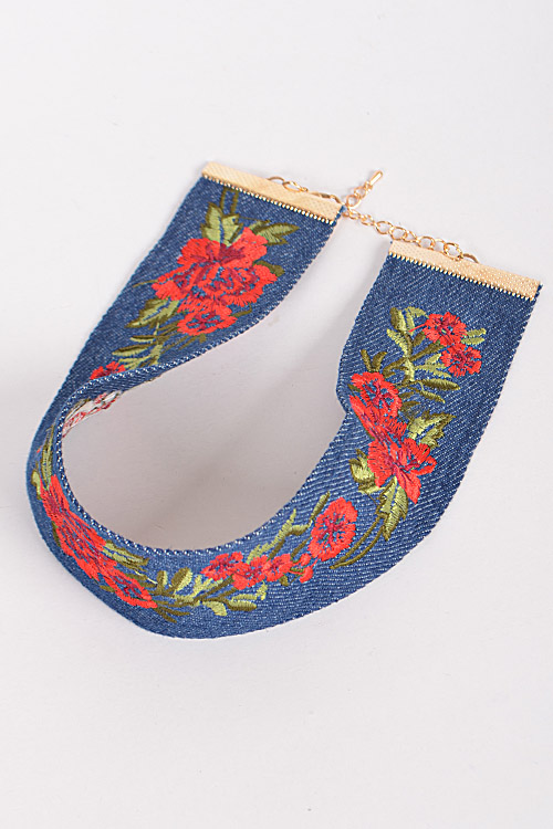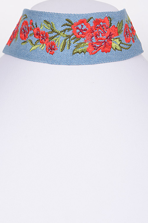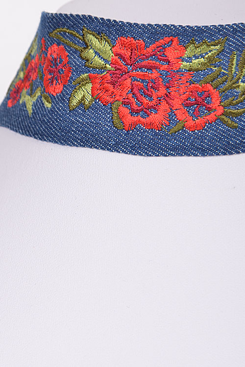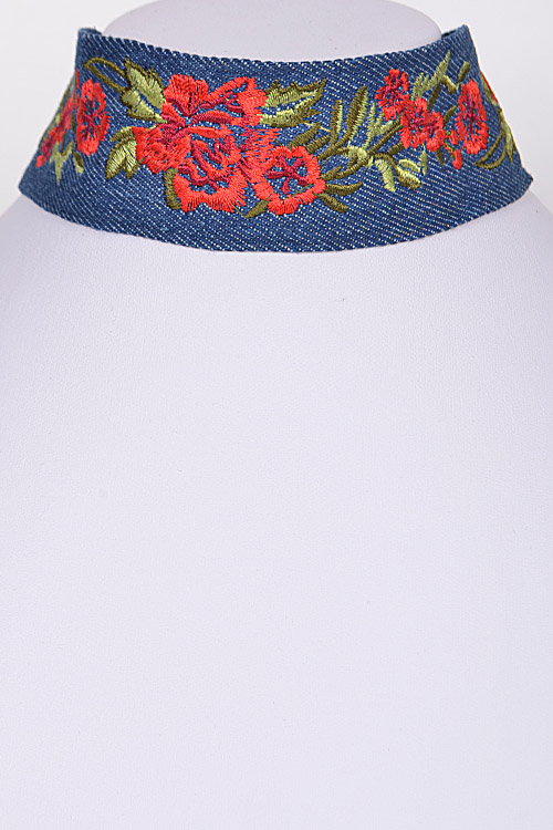 • * Denim Floral Choker Necklace * 15 x 1.6" approx.