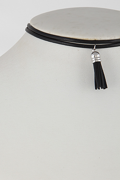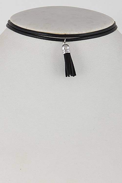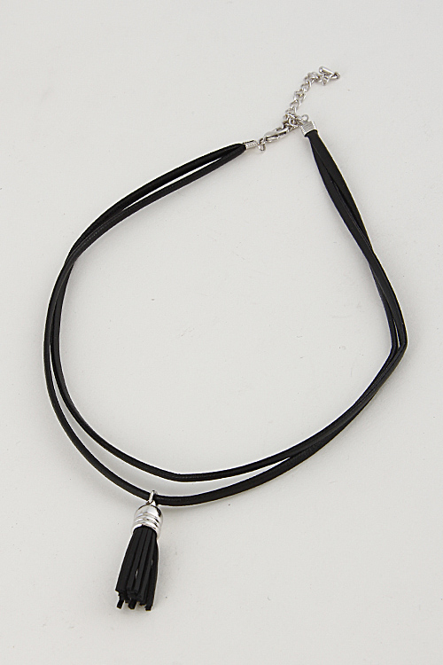 • * Black Choker Layered Necklace with Tassle Necklace 6FBF7 * 12" approx.