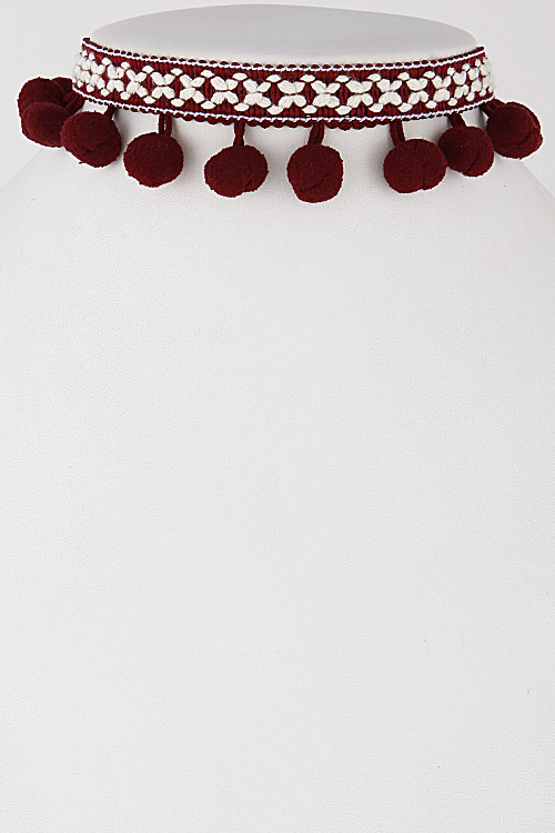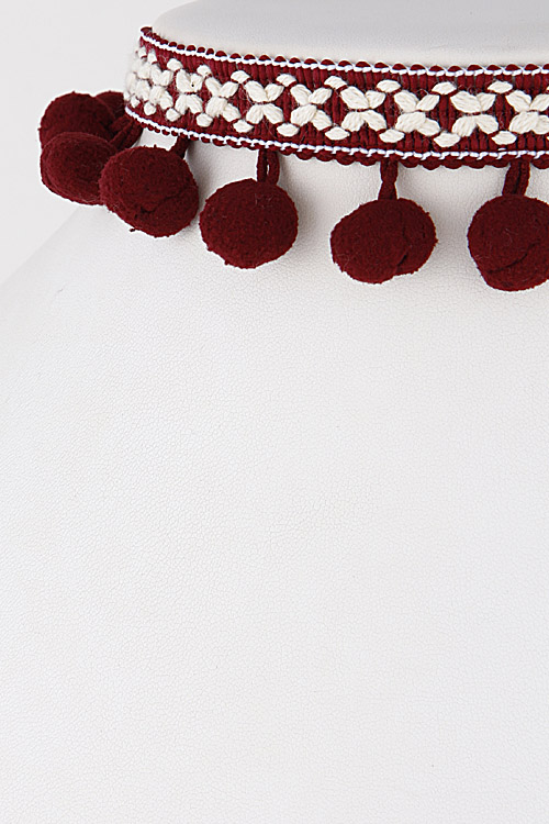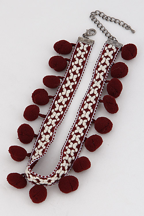 • * Tribal Inspired Choker Necklace with Puff Ball Details 6KCA6 * 1.5 x 12" approx.