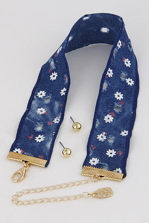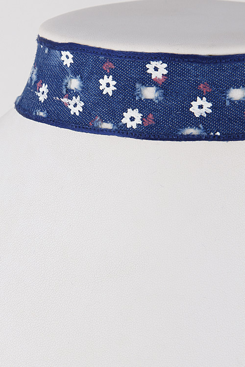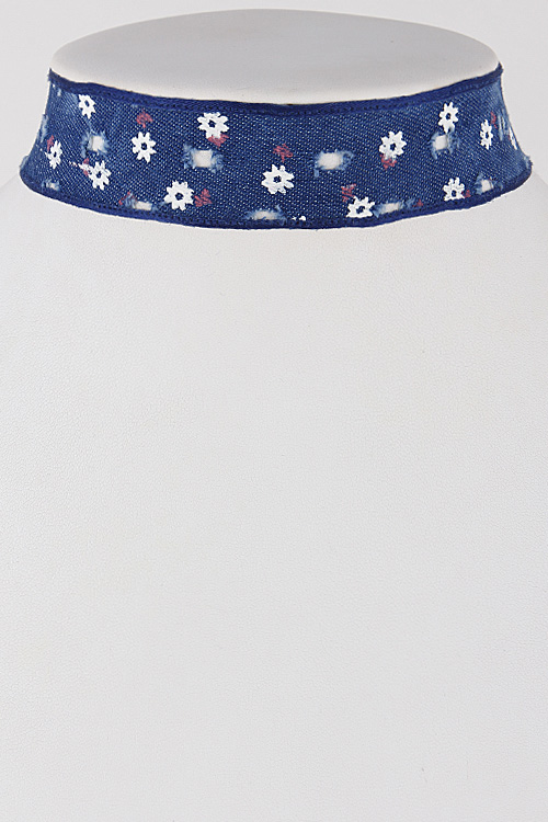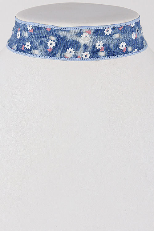 • * Denim Inspired Choker Necklace with Flower Details 6KAF9 * 1 x 12" approx.
