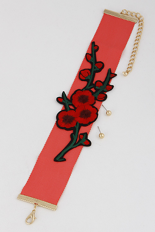 - * Embroidered Floral Choker Necklace 7DAG10 * 1.8 x 12" approx.