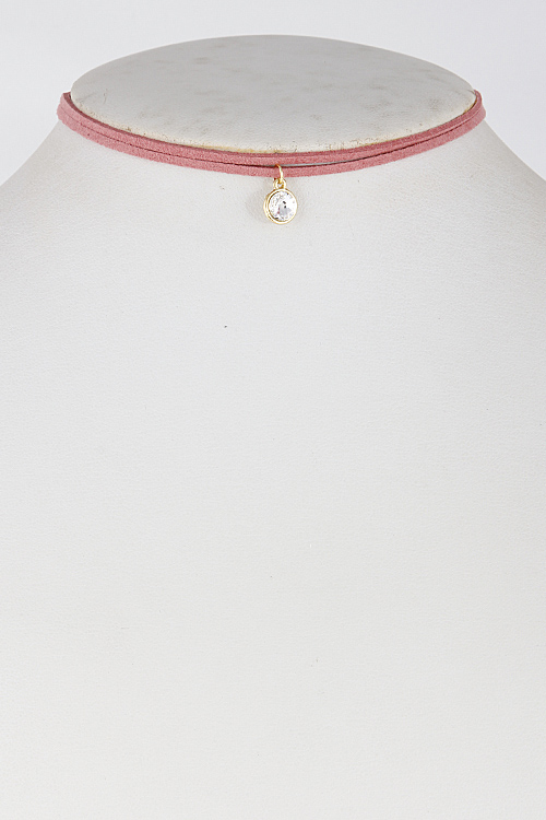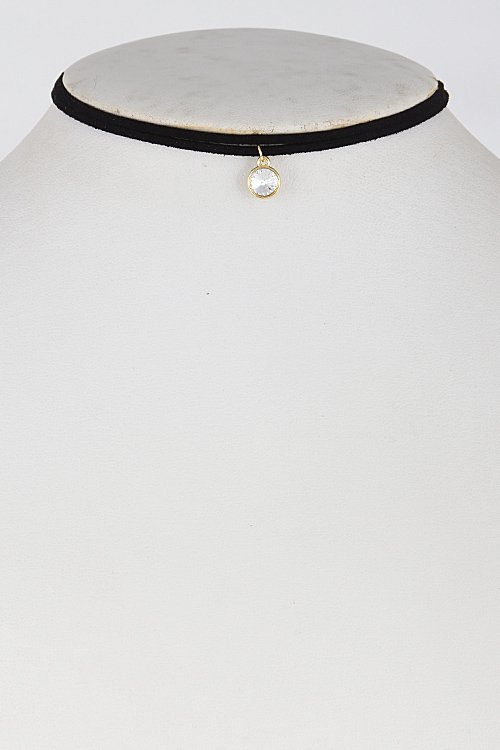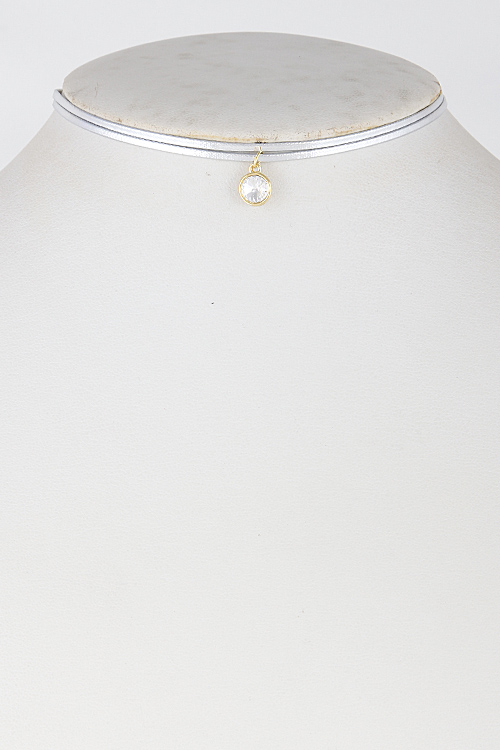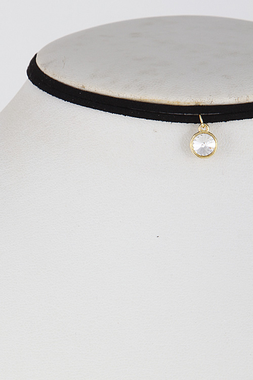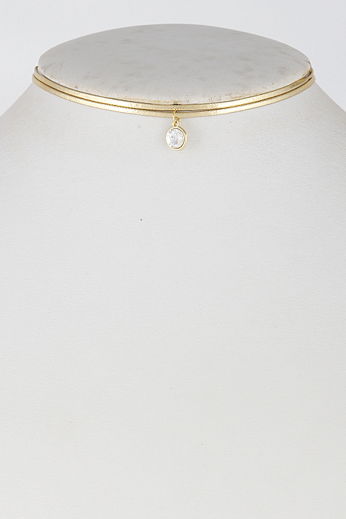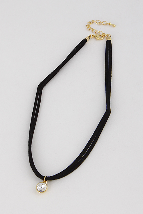 • * Two Lines Choker with Rhinestone Pendant 6GAC1 * 12" approx.