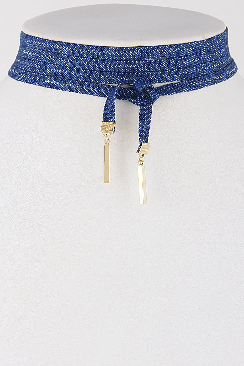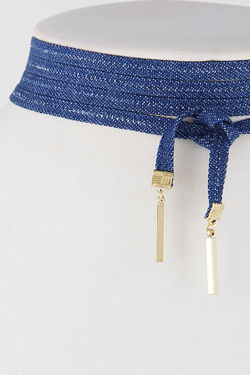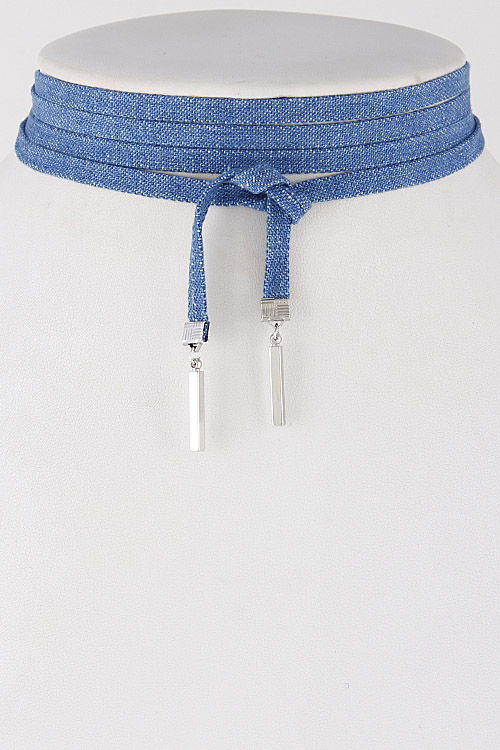 • * Denim Wrap Around Choker Necklace 6KCC8 * 52" approx.