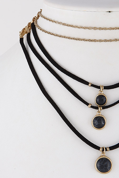 • * Multi Layered Choker Necklace with Western Stones Details 6LAC7 * 12" approx.