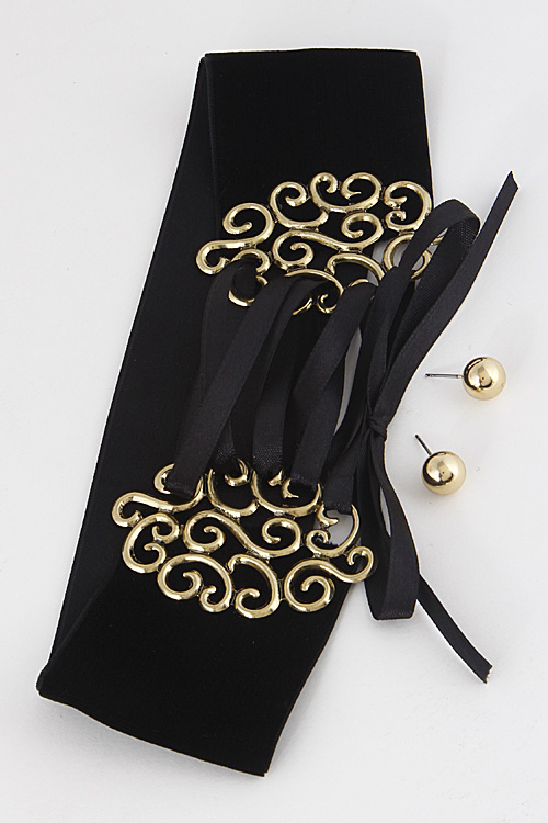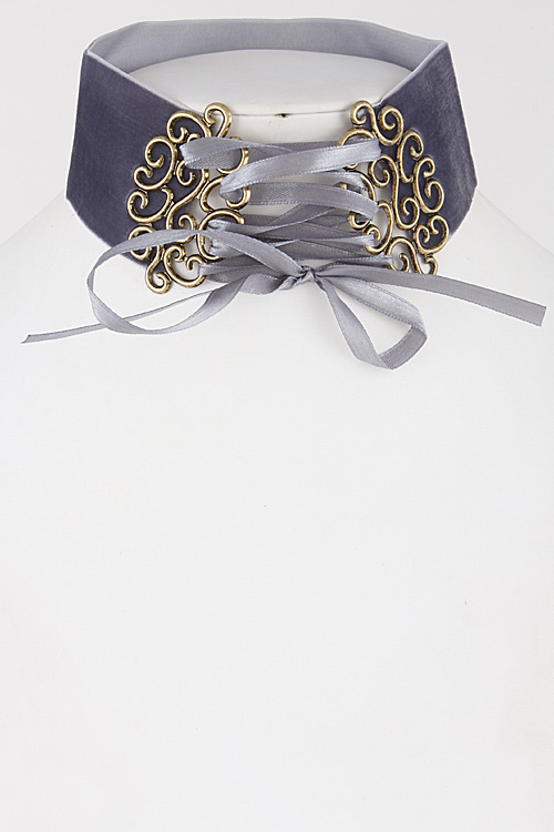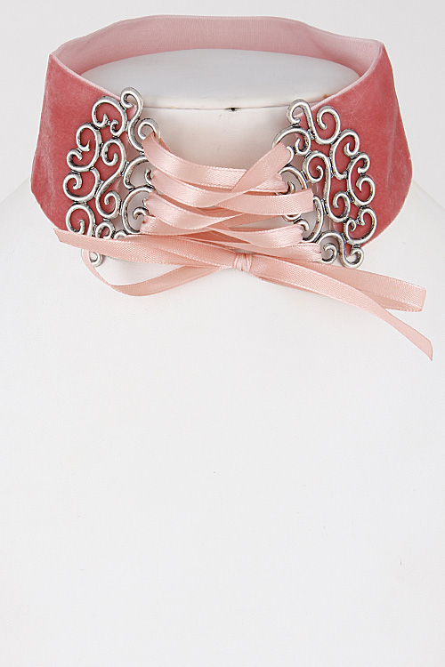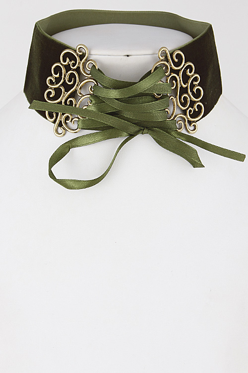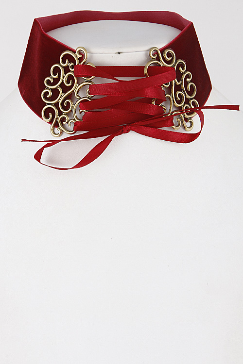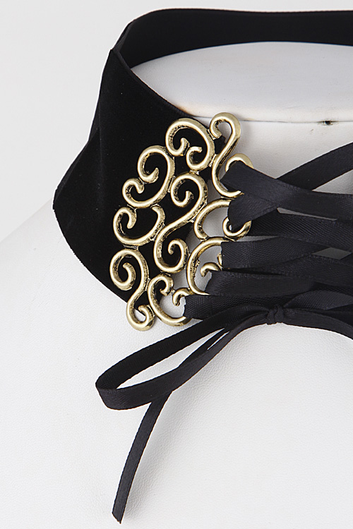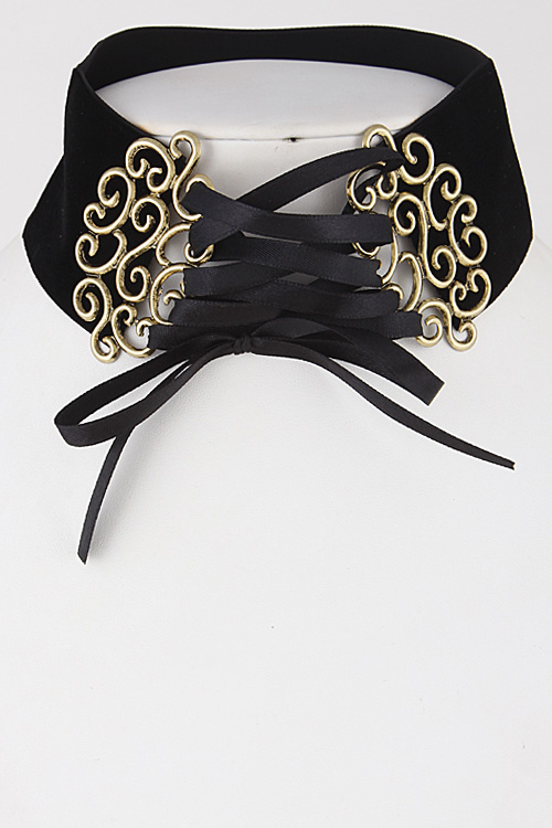 • * Thick Intricate Patterned Lace Choker Necklace 6JBA5 * 2 x 14" approx.