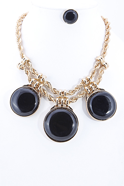 - * Three Big Stone Necklace 5HDA3 * 16 x 3" approx.