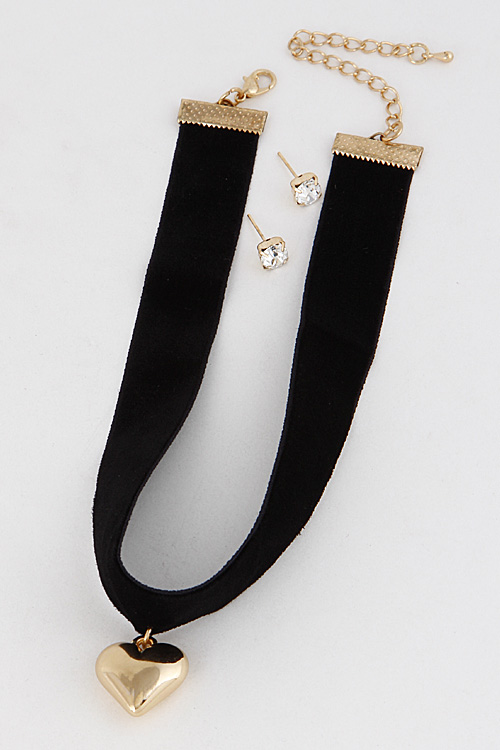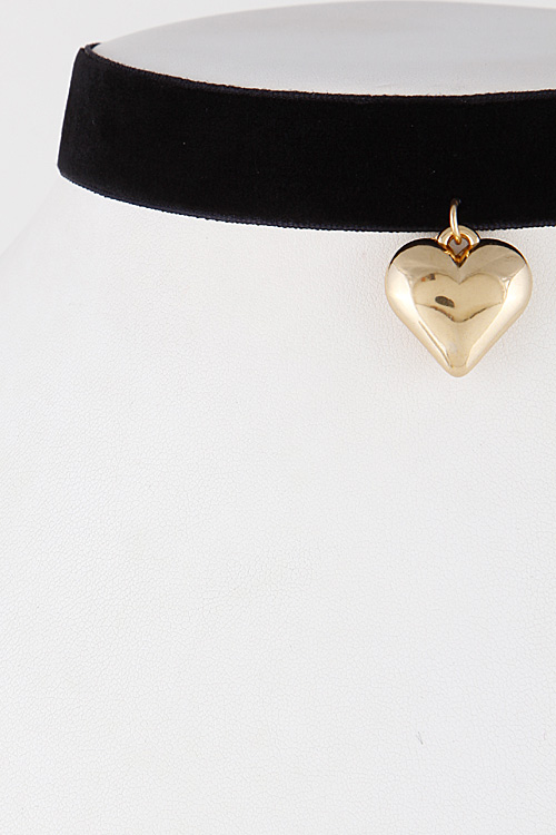 - * Heart Design Pendant Choker Necklace 6KBC3 * 0.8 x 12" approx.
