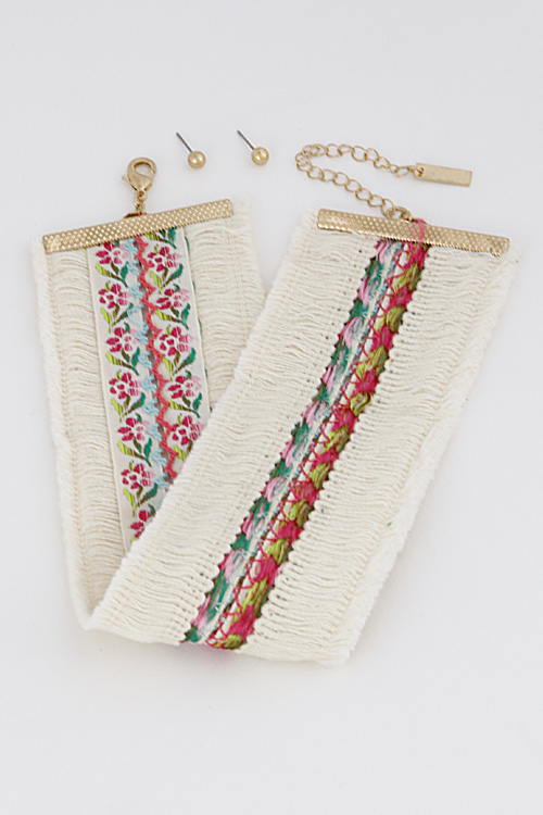 • * Indian Style Fringed Choker Necklace 6LBD1 * 2.2 x 12" approx.