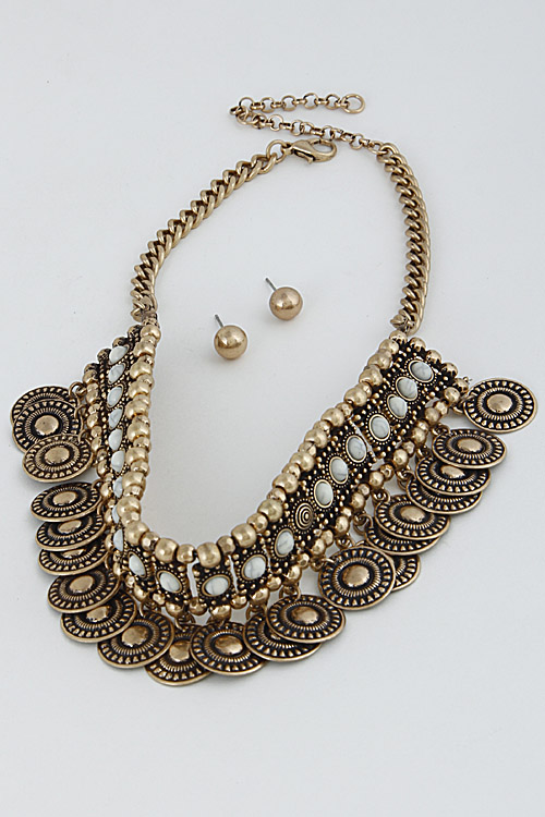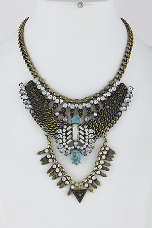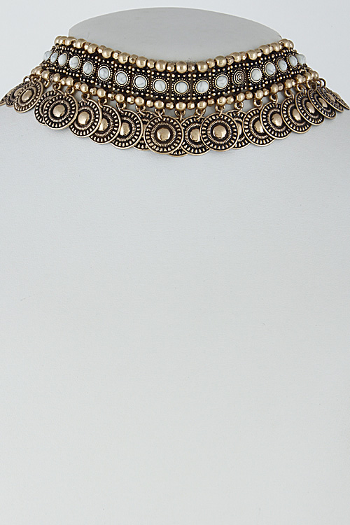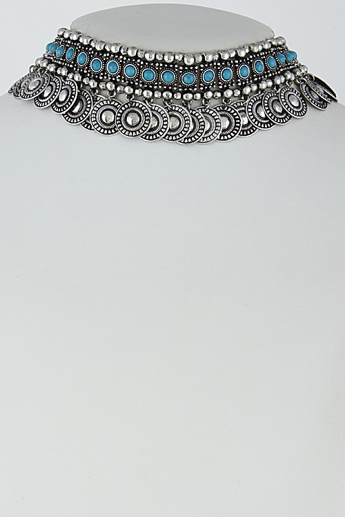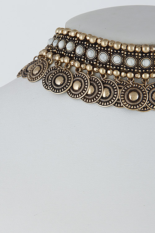 - * Thick Aztec Inspired Fringed Choker Necklace Set 6HAE4 * 1.5 x 14" approx.