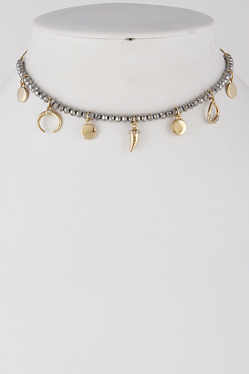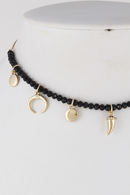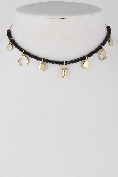 - * Simple Beaded Choker With Crescent 6ICC7 * 14" approx.